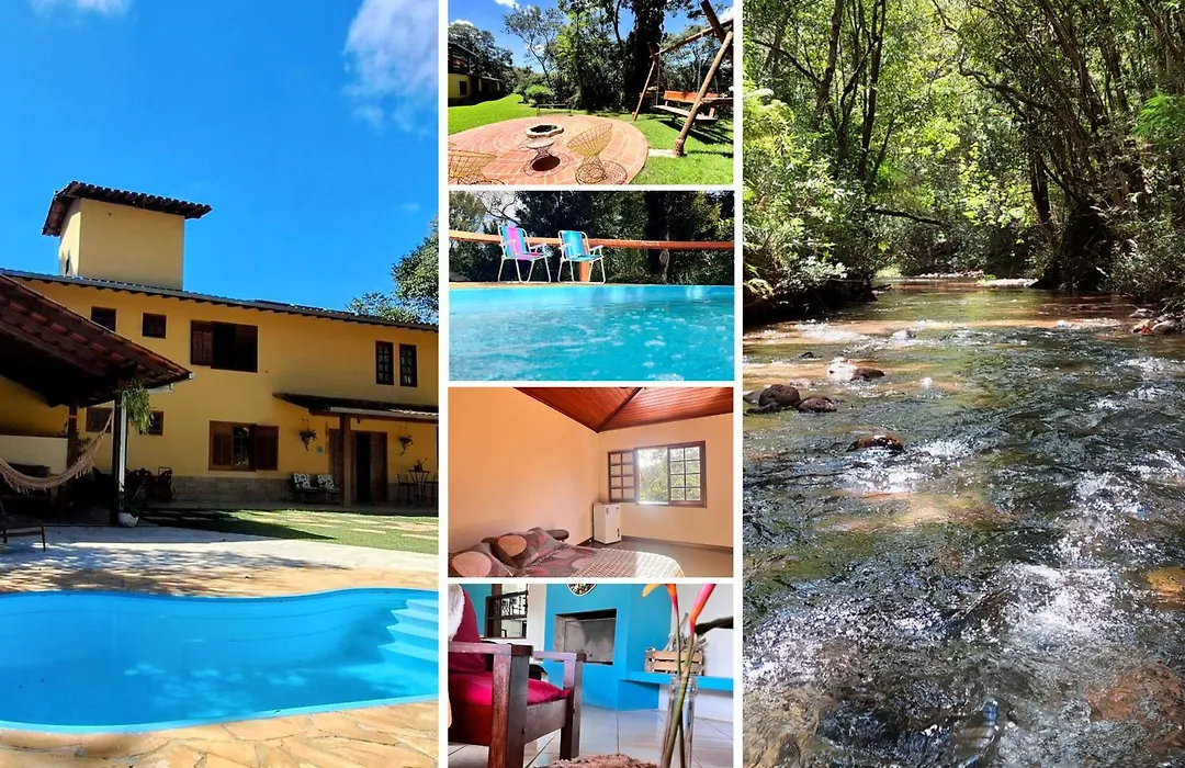 In der Unterkunft stehen Gästen eine voll ausgestattete Küchenzeile sowie ein Essbereich und ein Essbereich im Freien zur Verfügung. Es gibt auch eine Kaffee-/Teemaschine, einen Kühlschrank und einen Herd, damit Sie sich Ihr eigenes Essen zubereiten können. Das Restaurant Sítio Bar e e liegt etwa 1 Kilometer von der Villa Piscina Aquecida, 5 Suites, Trilha Privativa Ate O Riacho, Wi-Fi, Estacionamento, Ampla Area Externa Cercada De Natureza Exuberante - 200M Do Vilarejo entfernt und serviert brasilianische Gerichte.